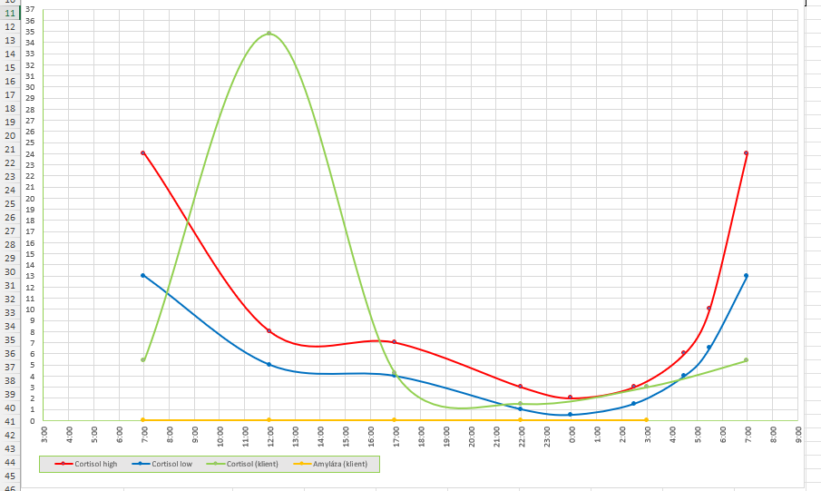 Ta odráží, zda je vaše tělo schopné ráno "nastartovat energii" a večer naopak přepnout do klidového režimu. V dnešní uspěchané době je ideálně vyrovnaná křivka spíše vzácností – většina lidí má nadledviny přetížené nebo naopak vyčerpané.